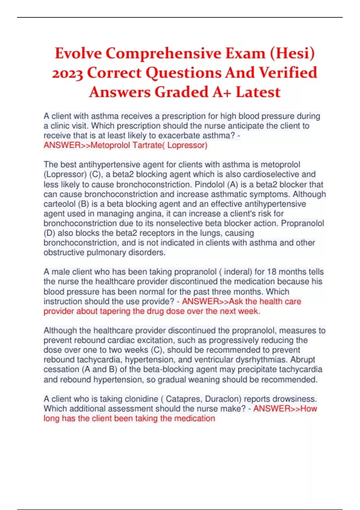 Evolve Comprehensive Exam (Hesi) 2023 Correct Questions And Verified Answers Graded A+ Latest