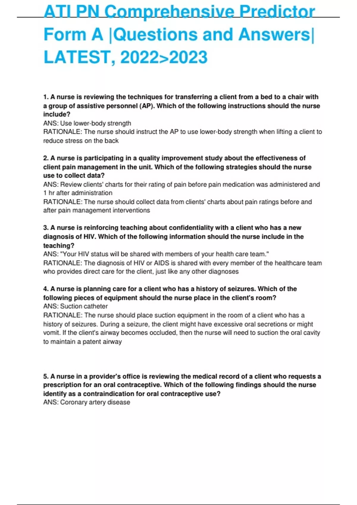 ATI PN Comprehensive Predictor Form A |Questions and Answers| LATEST, 2022>2023