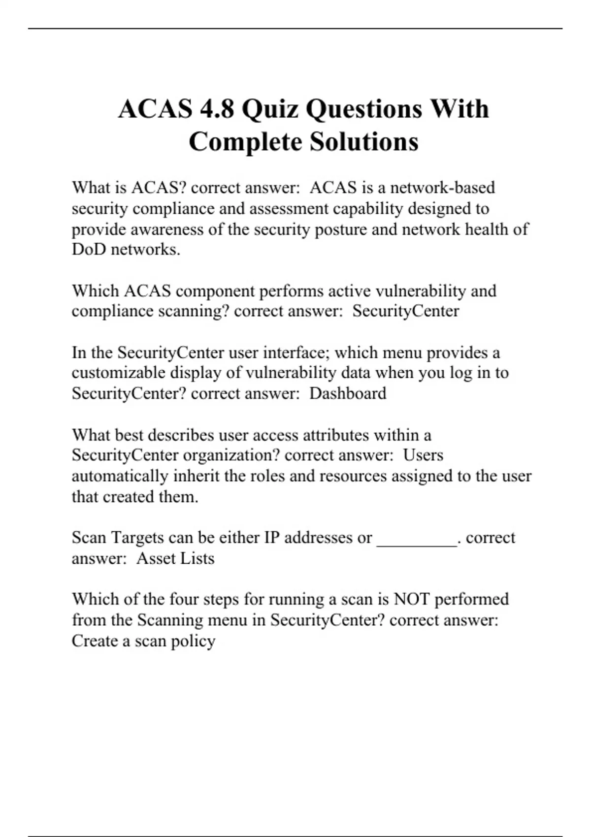 ACAS 4.8 Quiz Questions With Complete Solutions