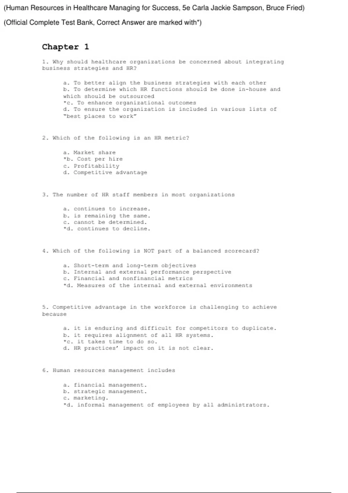 Human Resources in Healthcare Managing for Success, 5e Carla Jackie Sampson, Bruce Fried (Test Bank Latest Edition 2023-24, Grade A+, 100% Verified) Human Resources in Healthcare Managing for Success, 5e Carla Jackie Sampson, Bruce Fried (Test Bank Latest Edition 2023-24, Grade A+, 100% Verified)