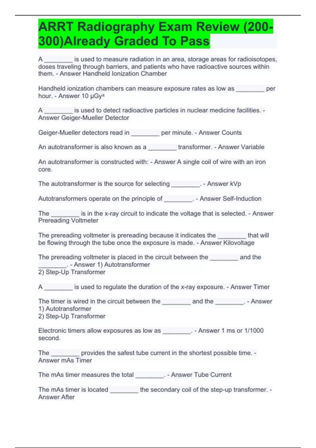 ARRT Radiography Exam Review (200-300)Already Graded To Pass