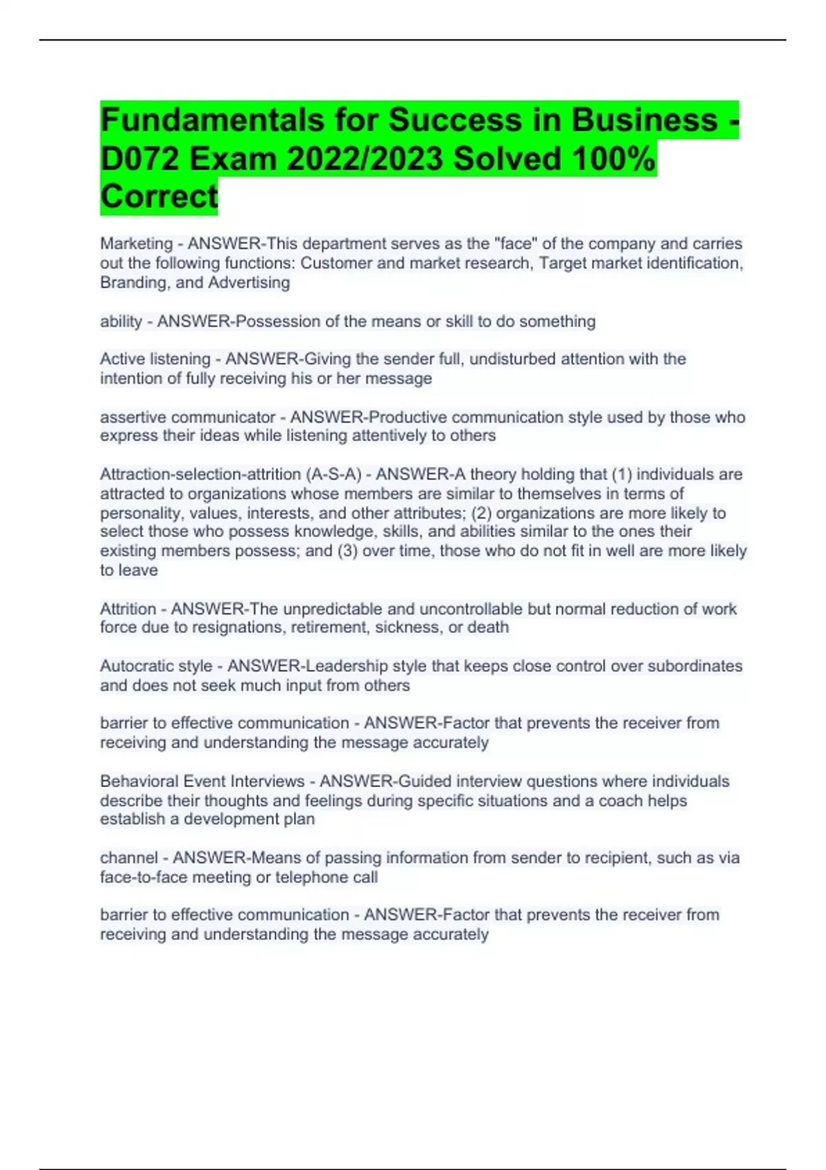 Fundamentals for Success in Business - D072 Exam 2022/2023 Solved 100% Correct