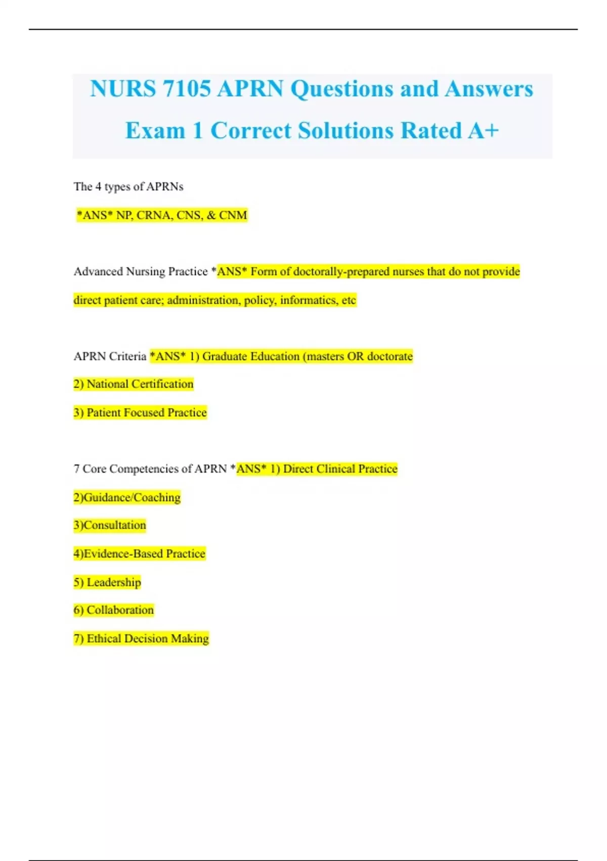 NURS 7105 APRN Questions and Answers Exam 1 Correct Solutions Rated A+