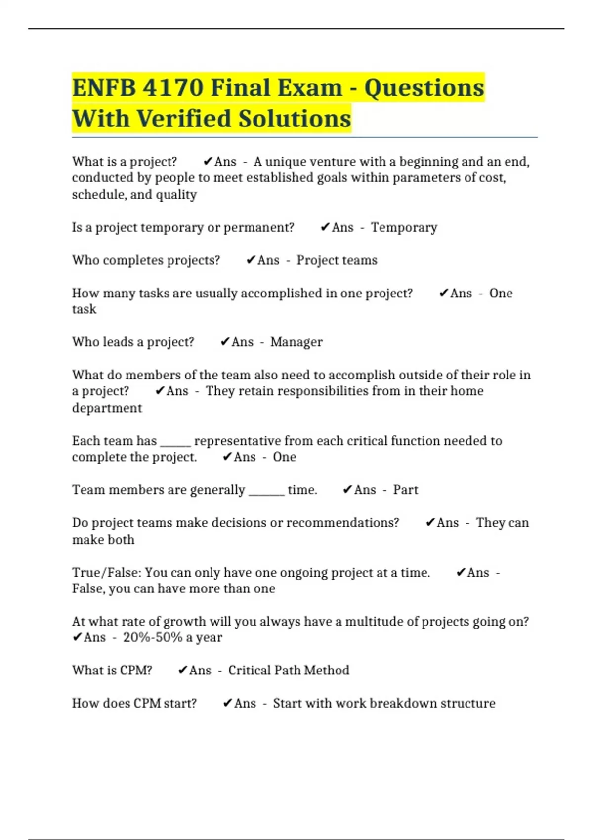 ENFB 4170 Final Exam - Questions With Verified Solutions