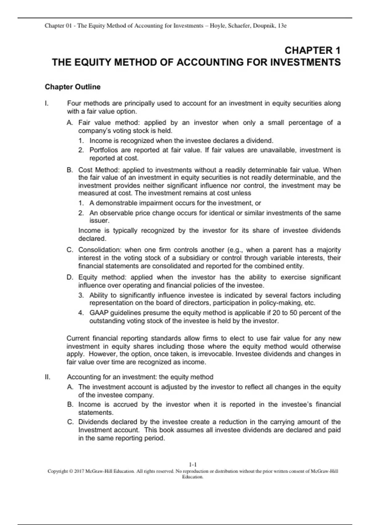 , Chapter 01 - The Equity Method of Accounting for Investments – Hoyle, Schaefer, Doupnik, 13e