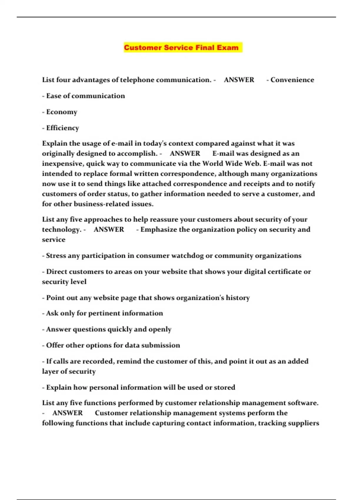 Customer Service Final Exam ...