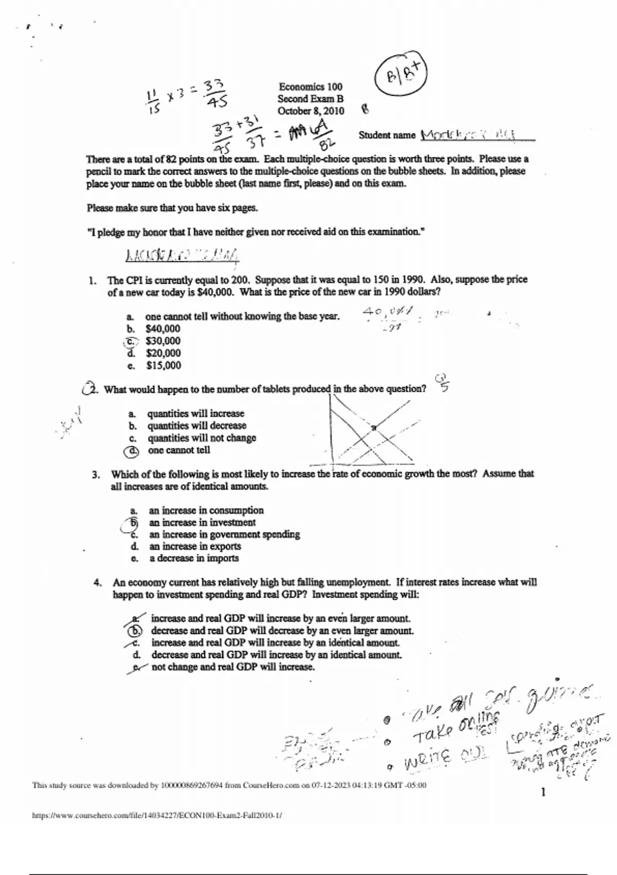 ECON 100 EXAM 2 PAST PAPER VANDERBILT