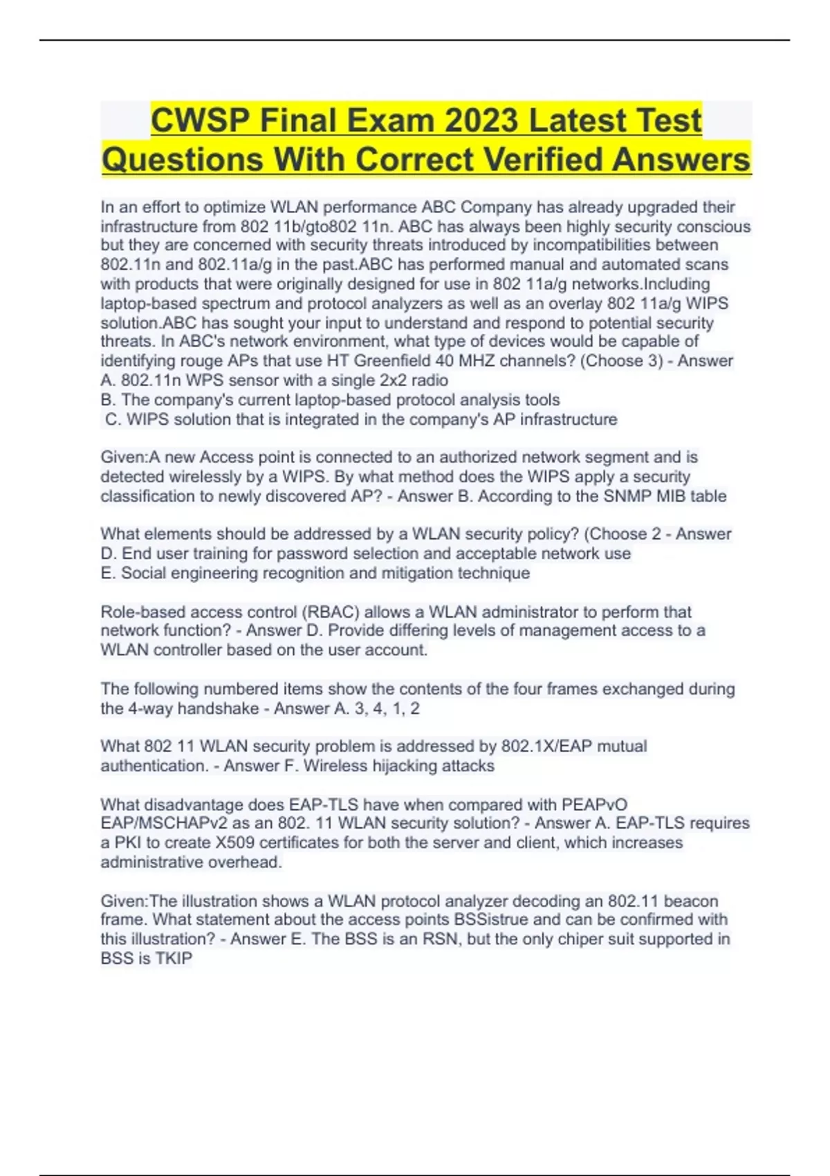 CWSP Final Exam 2023 Latest Test Questions With Correct Verified Answers