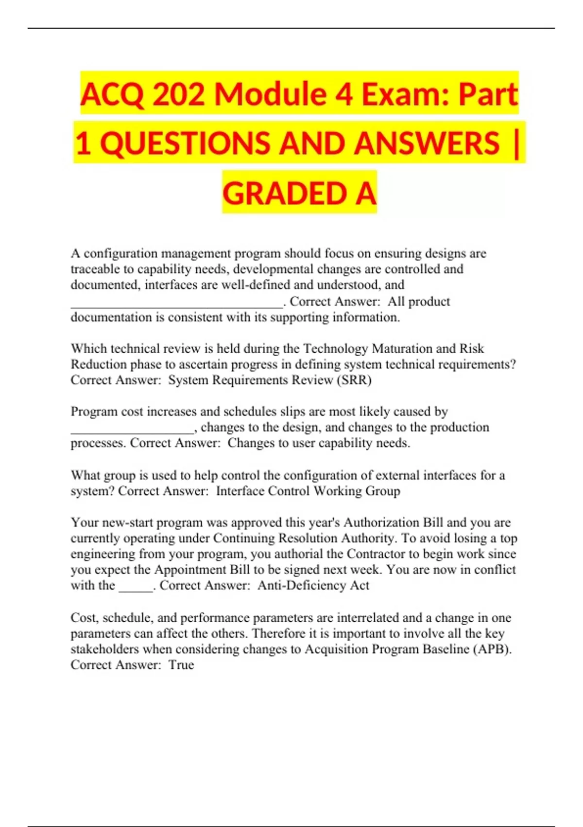ACQ 202 Module 4 Exam: Part 1 QUESTIONS AND ANSWERS | GRADED A