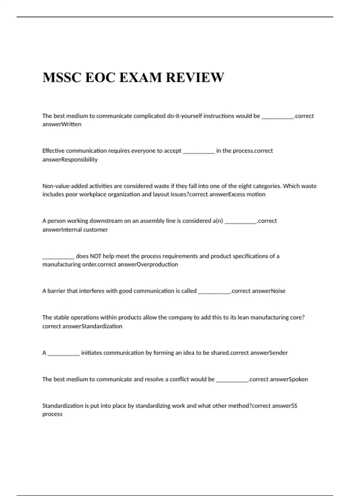 MSSC EOC EXAM REVIEW QUESTIONS WITH CORRECT ANSWERS