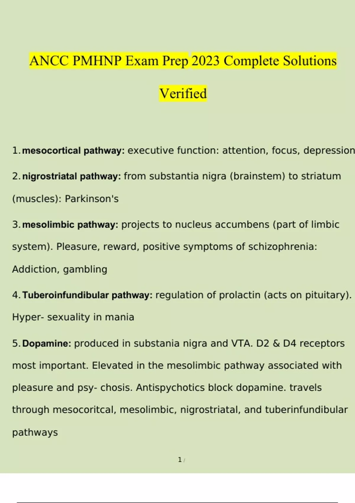 ANCC PMHNP Exam 2023 - 2024 STUDY BUNDLE PACK SOLUTION (Questions and Answers )(Verified)