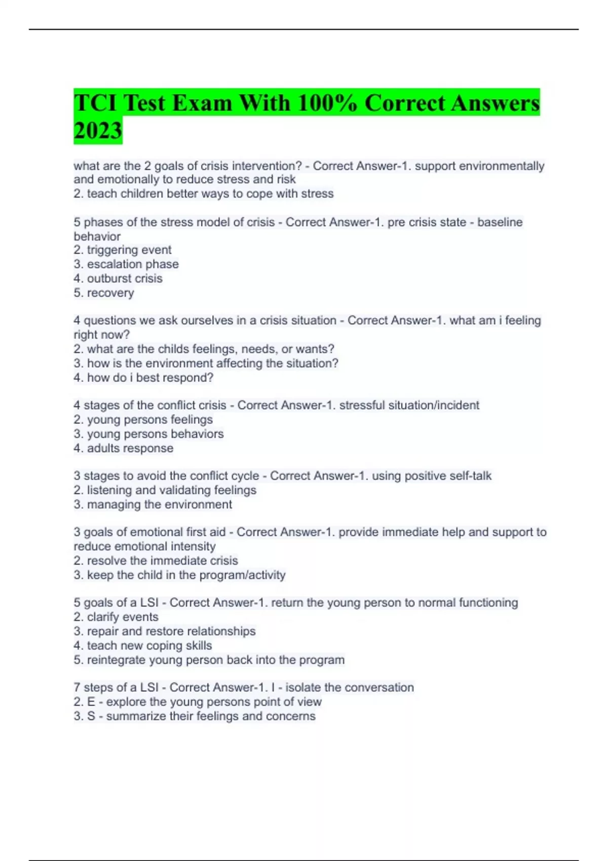 tci test exam with 100 correct answers 2023