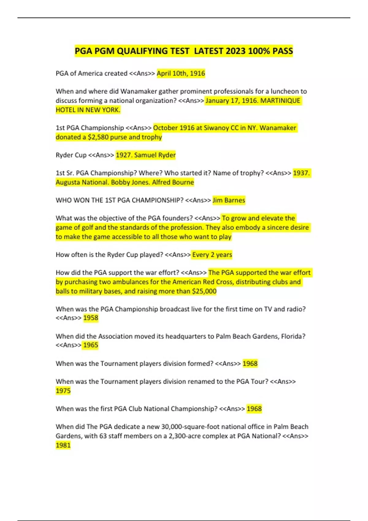 PGA PGM QUALIFYING TEST LATEST 2023 100% PASS