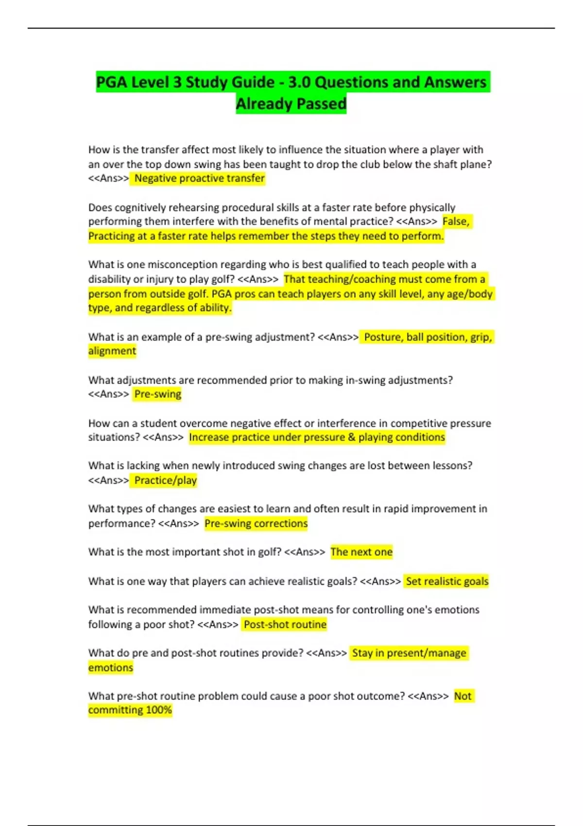 PGA Level 3 Study Guide - 3.0 Questions and Answers Already Passed