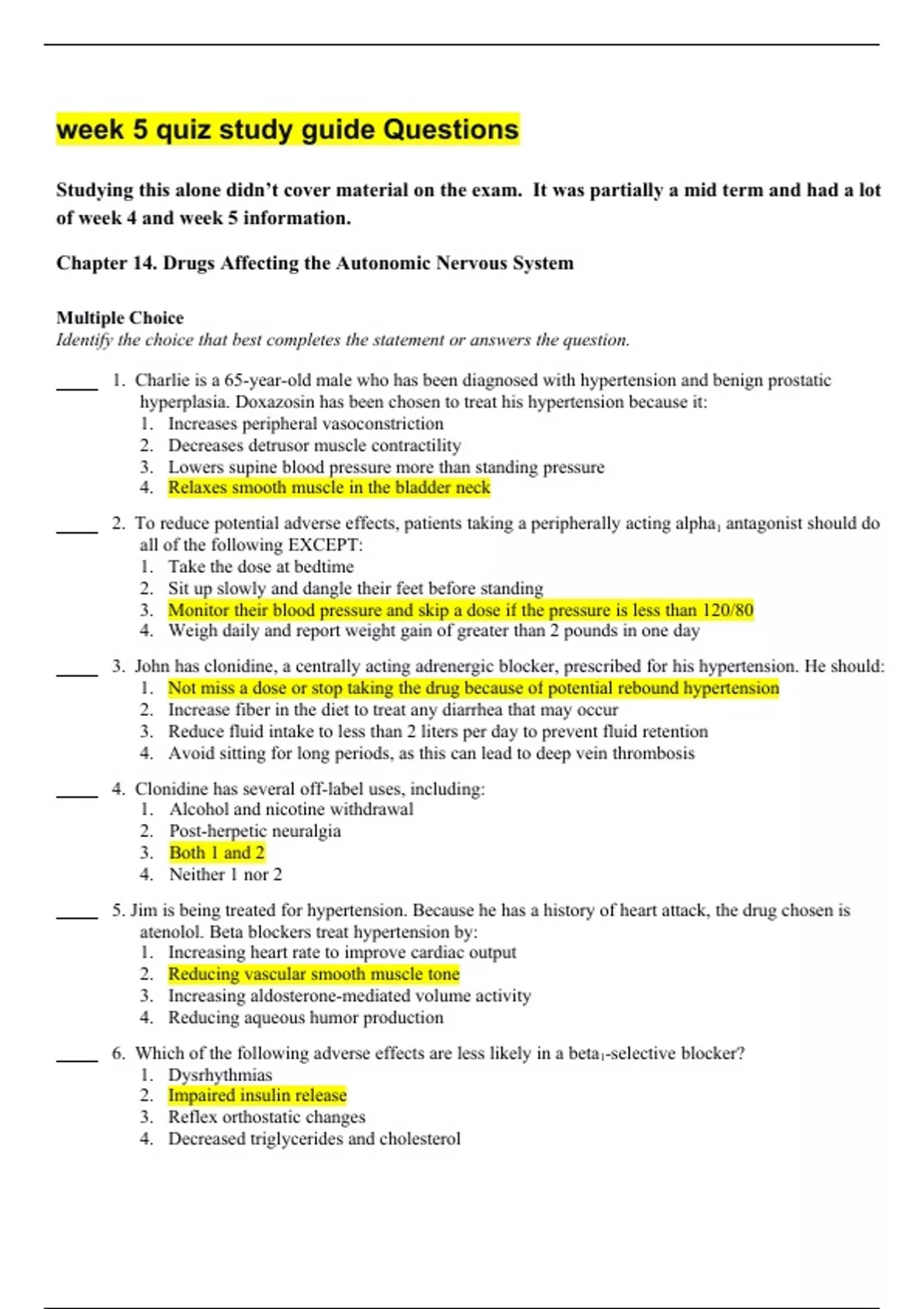 week 5 quiz study guide Questions