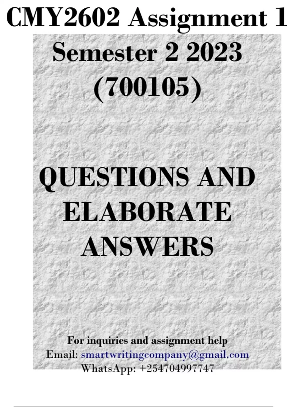 CMY2602 Assignment 1 Semester 2 2023 (700105) - DUE 17 August 2023
