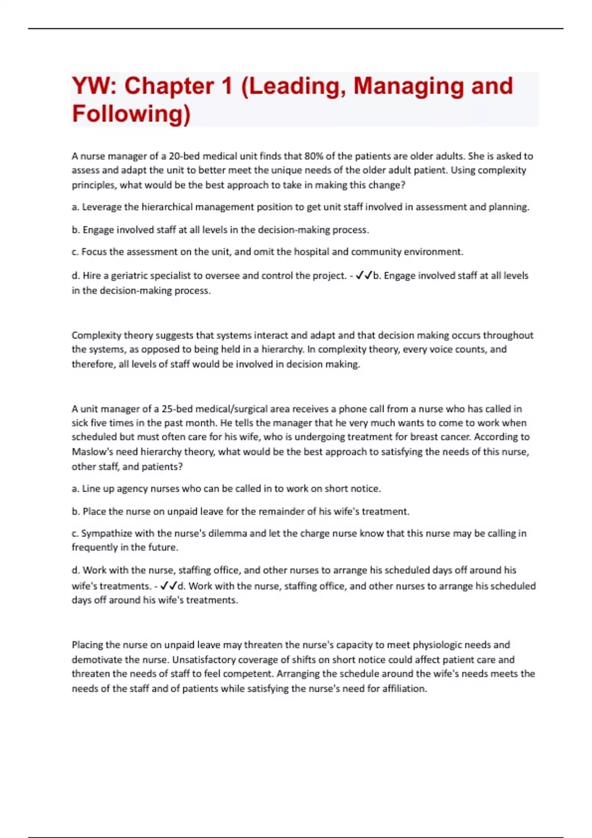 YW: Chapter 1 (Leading, Managing and Following) | Questions and Answers(A+ Solution guide)