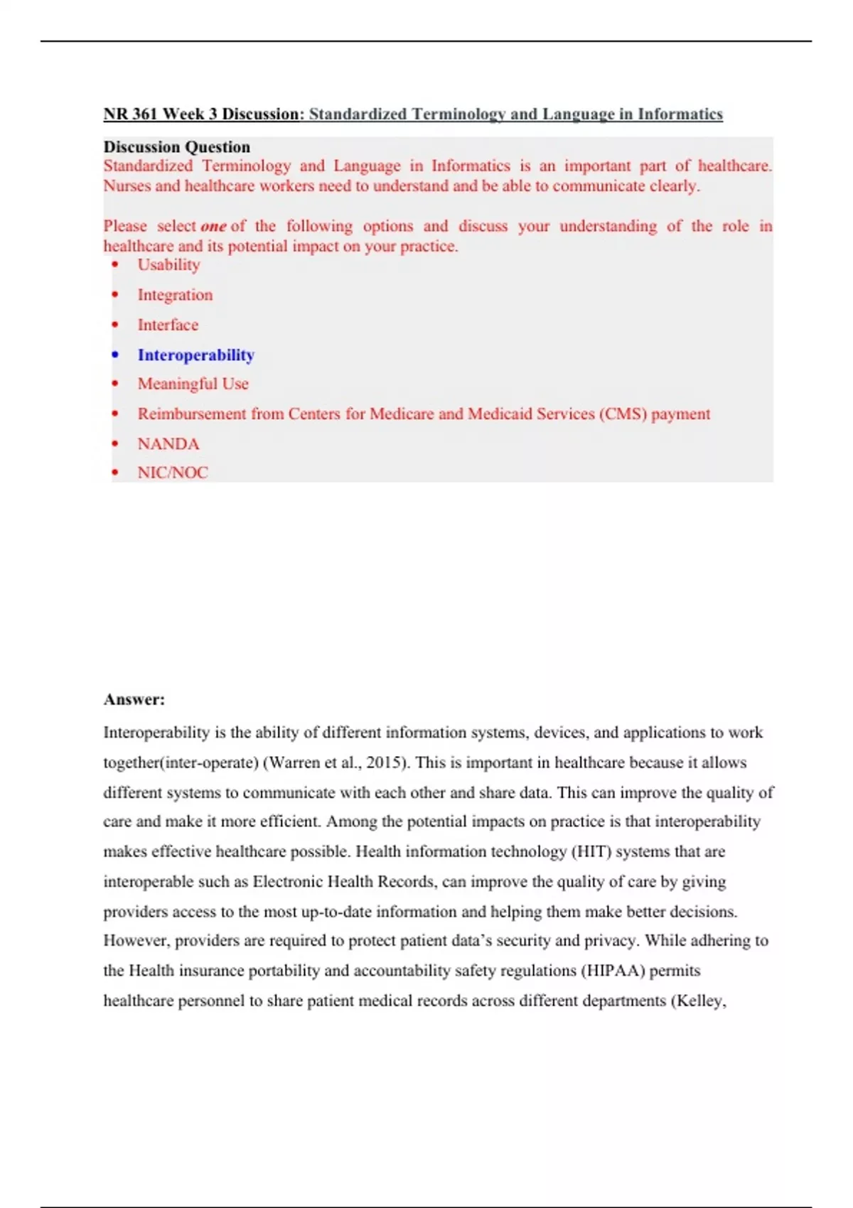 NR 361 Week 3 Discussion: Standardized Terminology and Language in Informatics