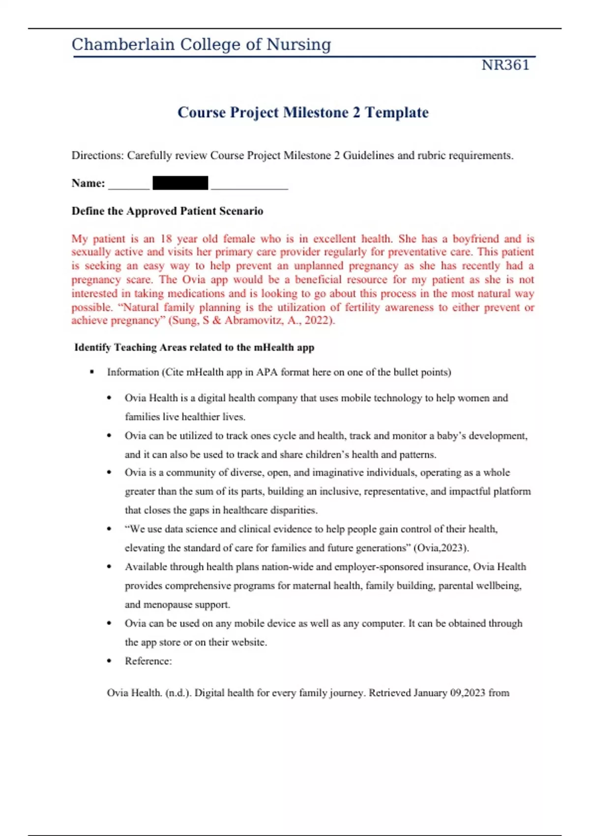 Information (Cite mHealth app in APA format here on one of the bullet points)
