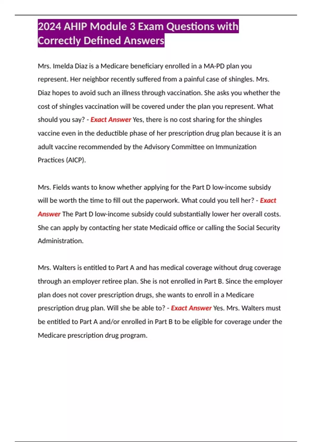 , 2024 AHIP Module 3 Exam Questions with