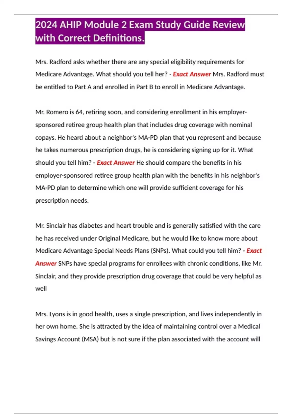 Medicare Advantage. What should you tell her? - Exact Answer Mrs. Radford must