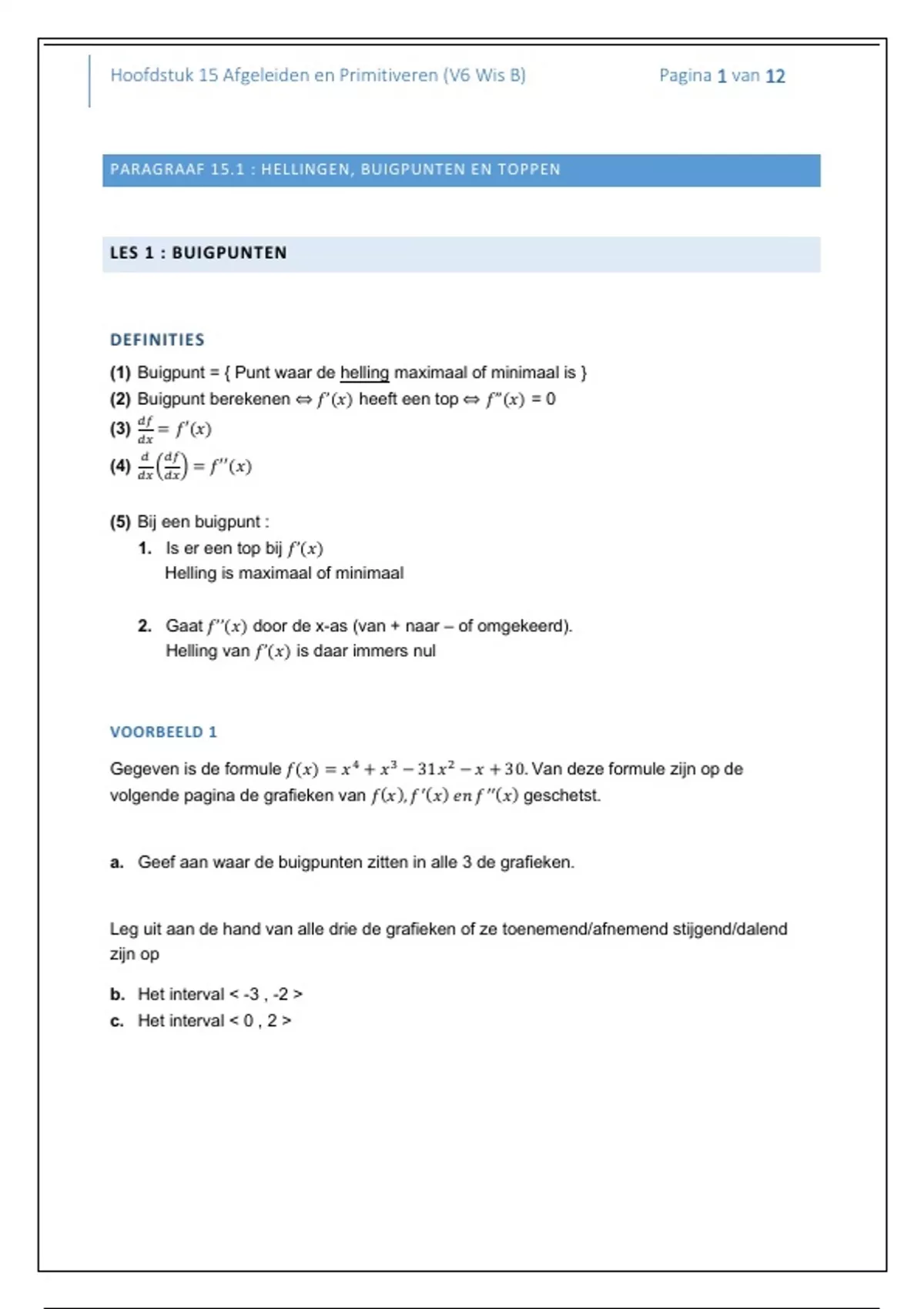 (1) Buigpunt = { Punt waar de helling maximaal of minimaal is }