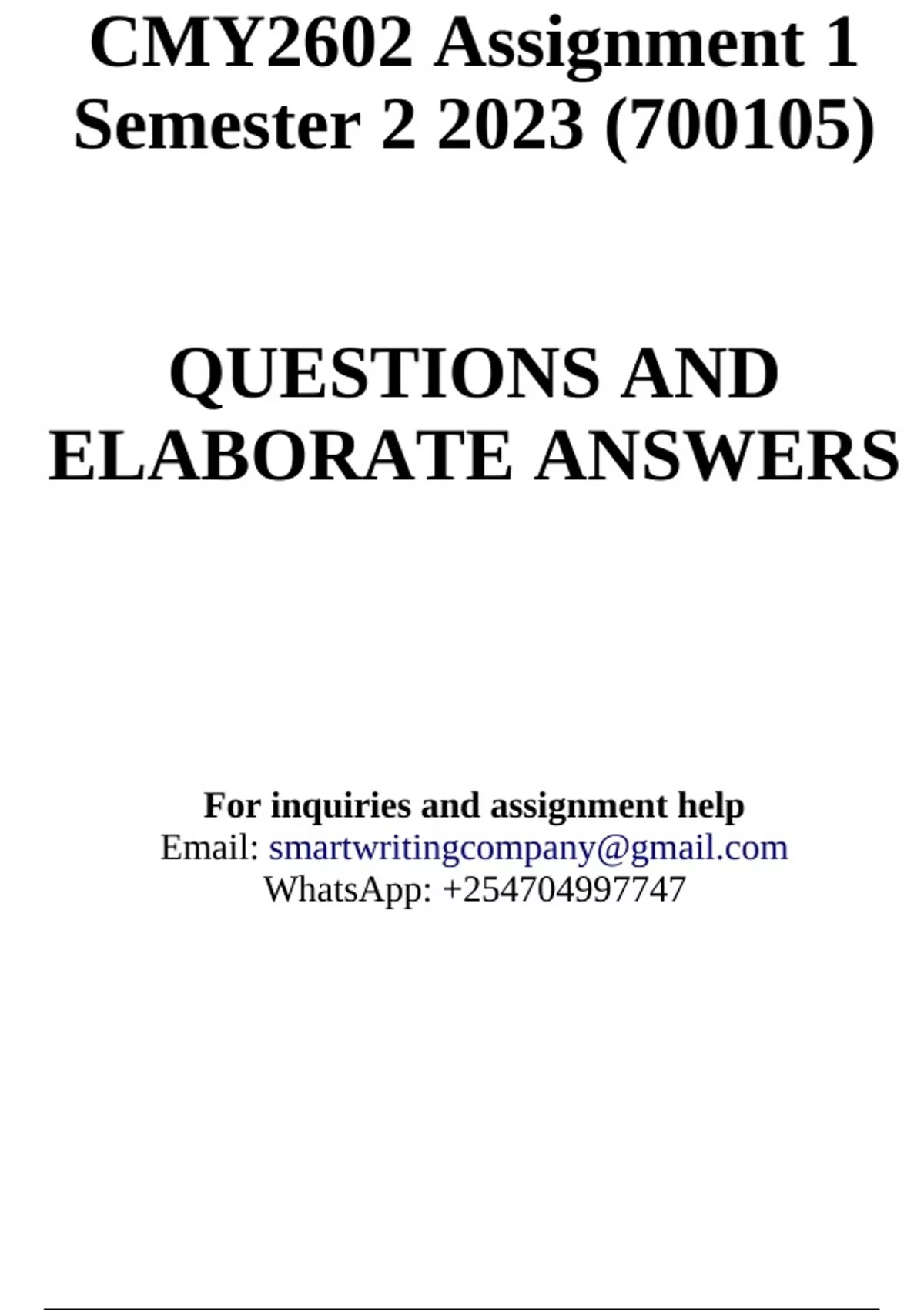 CMY2602 Assignment 1 Semester 2 2023 (700105) - DUE 17 August 2023