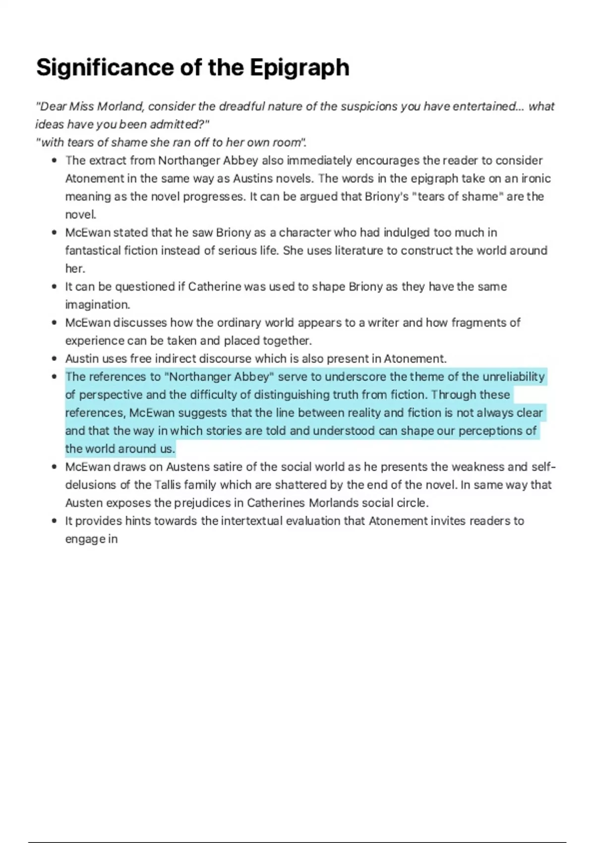 Atonement in the same way as Austins novels. The words in the epigraph take on an ironic