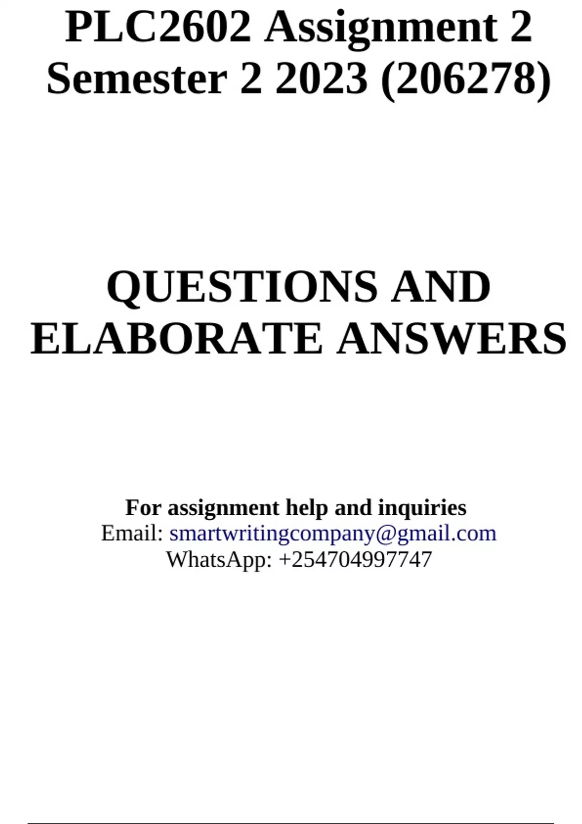 PLC2602 Assignment 2 Semester 2 2023 (206278) -DUE 28 September 2023