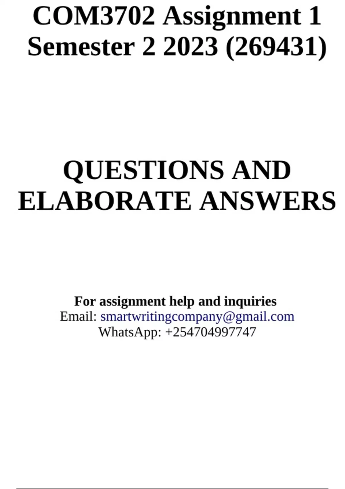 COM3702 Assignment 1 Semester 2 2023 (269431) - DUE 8 August 2023