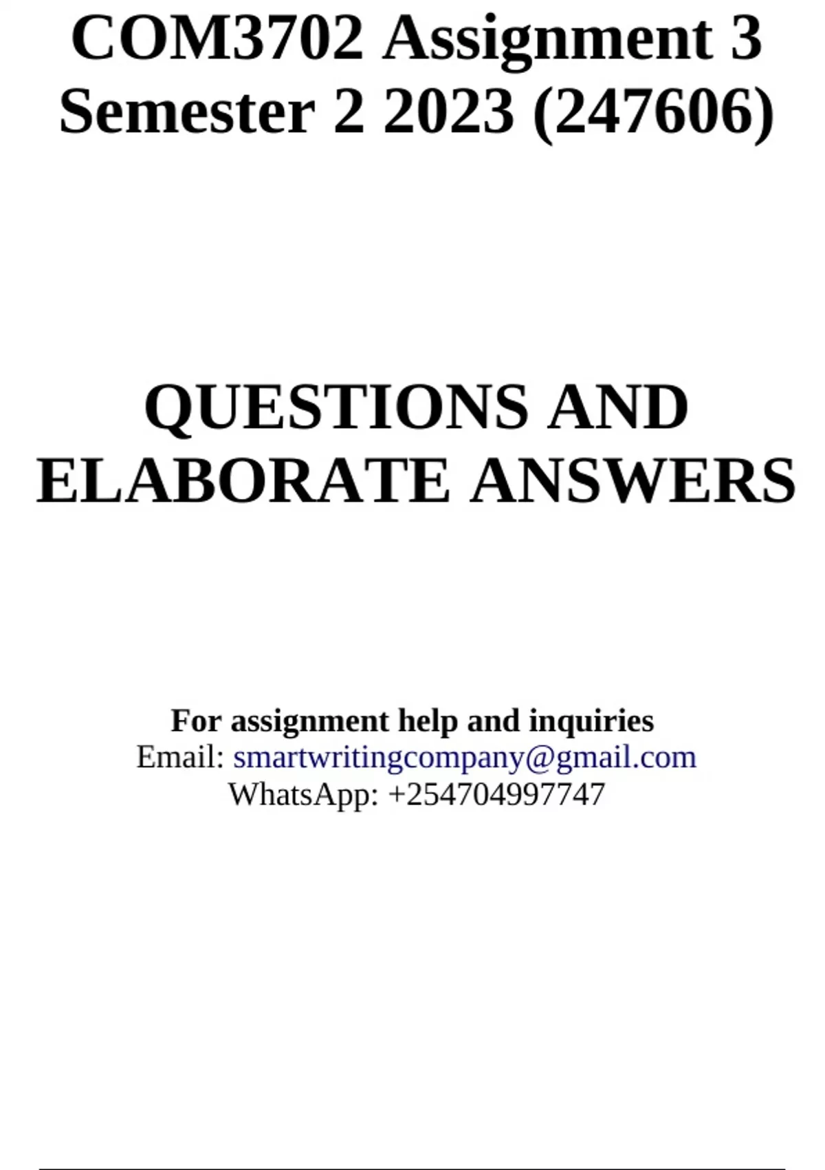 COM3702 Assignment 3 Semester 2 2023 (247606) - DUE 3 OCTOBER 2023
