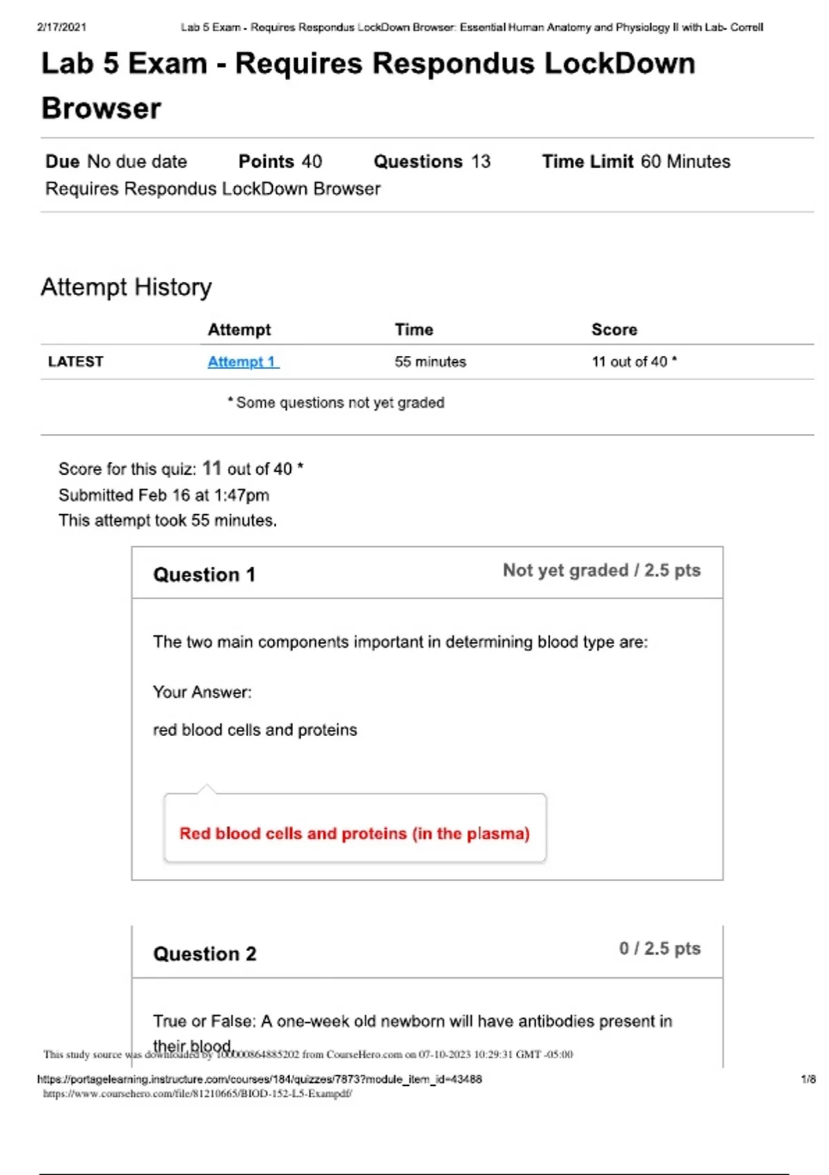 BIOD 152 LAB 5 EXAM 2023