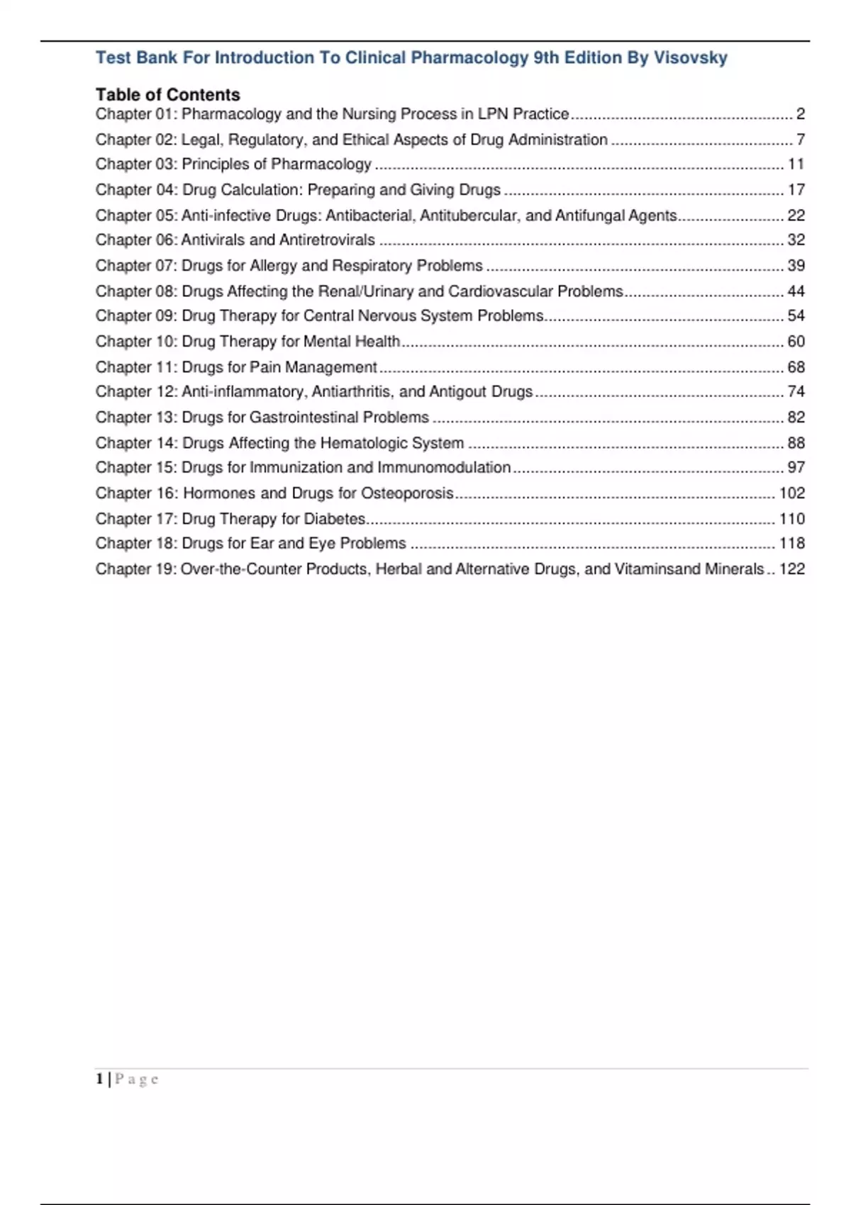 Chapter 01: Pharmacology and the Nursing Process in LPN Practice .................................................. 2