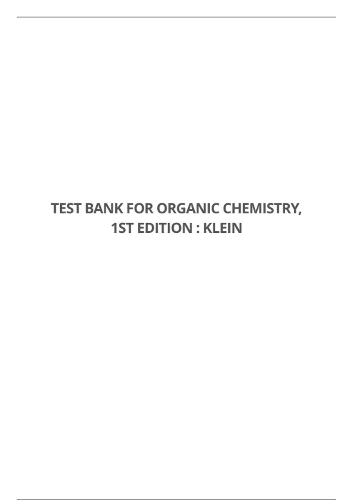 TEST BANK FOR ORGANIC CHEMISTRY, 1ST EDITION : KLEIN