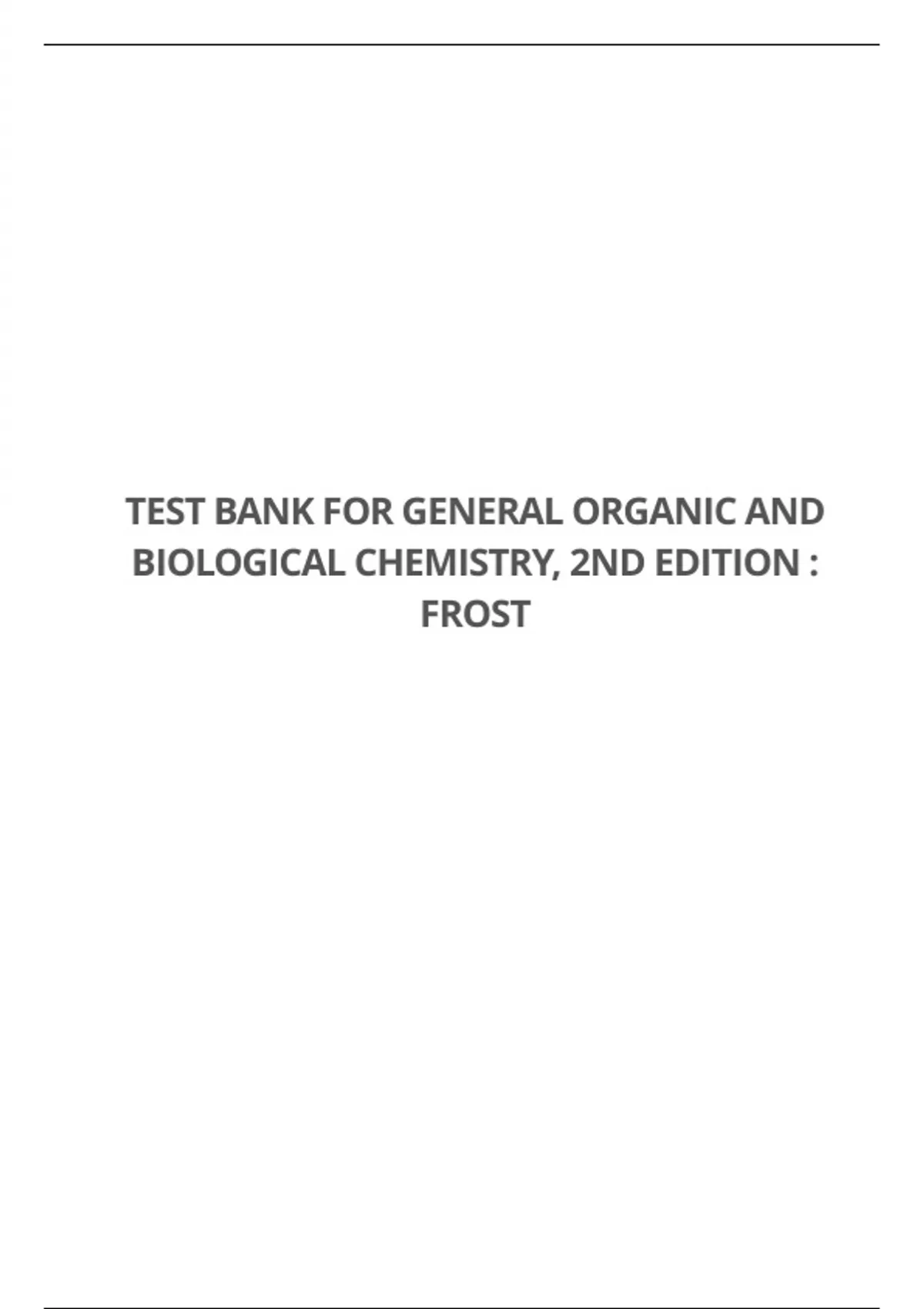 TEST BANK FOR GENERAL ORGANIC AND BIOLOGICAL CHEMISTRY, 2ND EDITION : FROST