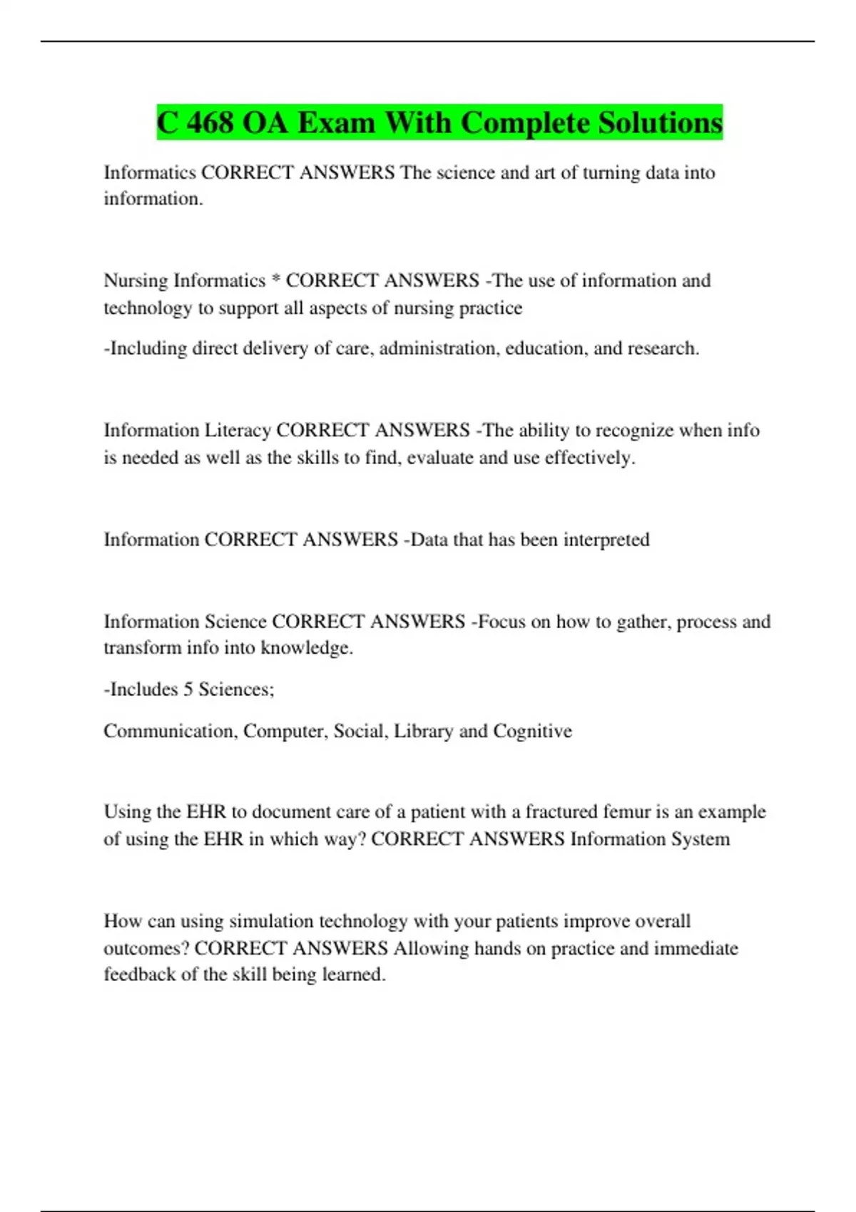 C 468 OA Exam With Complete Solutions