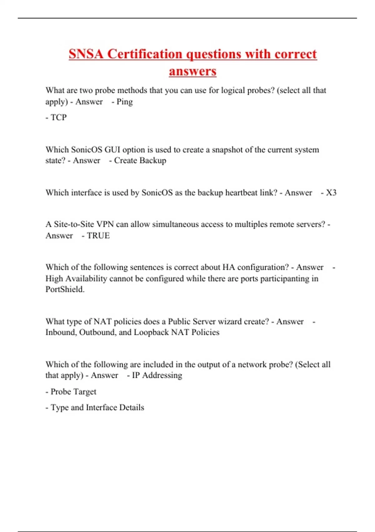 snsa certification questions with correct answers