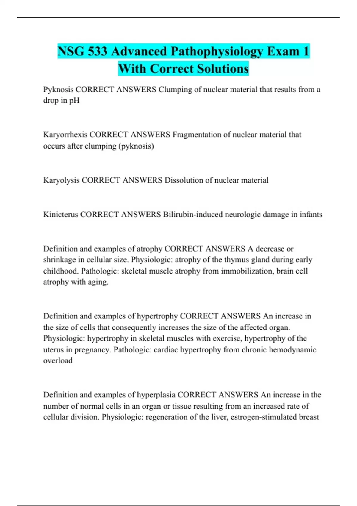 NSG 533 Advanced Pathophysiology Exam 1 With Correct Solutions