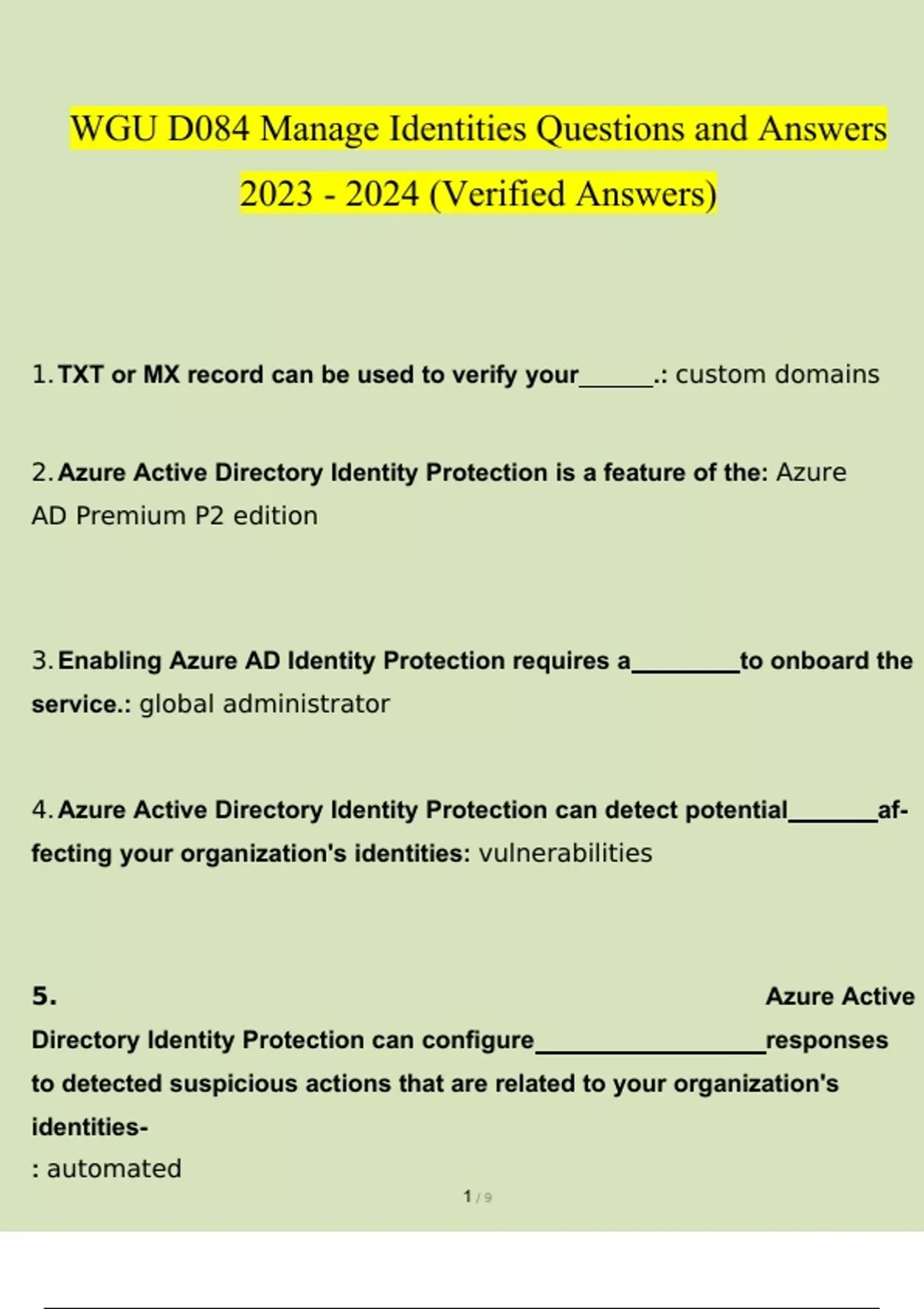 WGU D084 Manage Identities Questions and Answers (Verified Answers) WGU D084 Manage Identities Questions and Answers (Verified Answers)