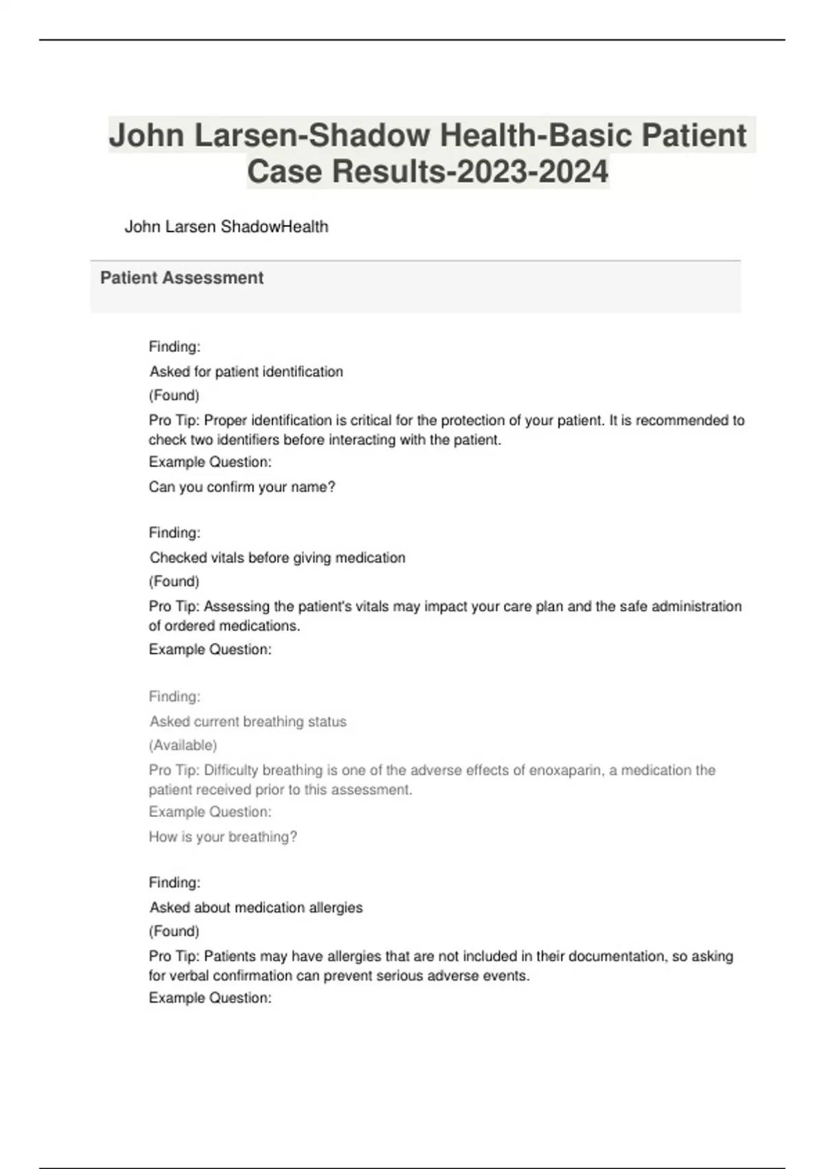 John Larsen-Shadow Health-Basic Patient Case Results-