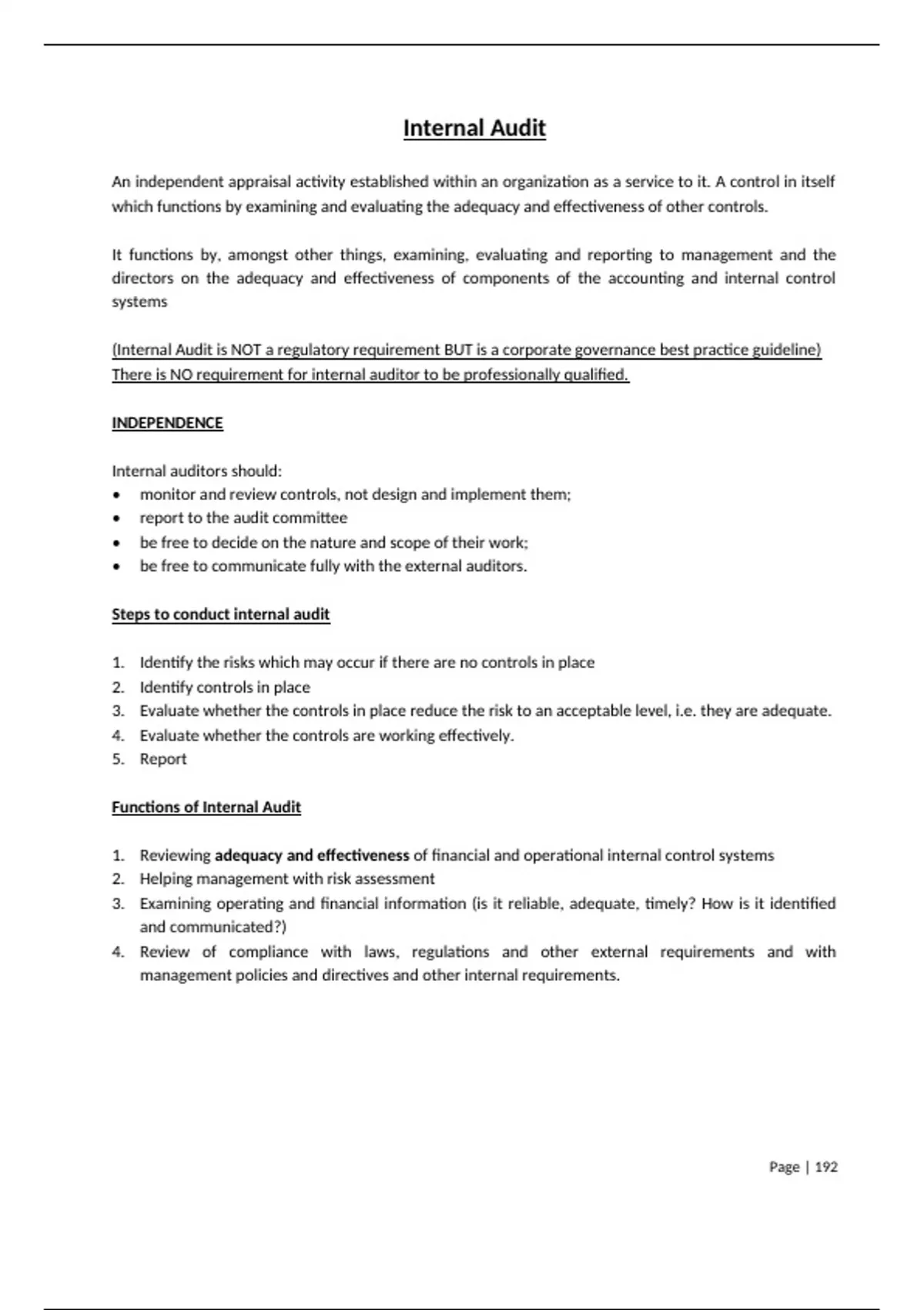(Internal Audit is NOT a regulatory requirement BUT is a corporate governance best practice guideline)