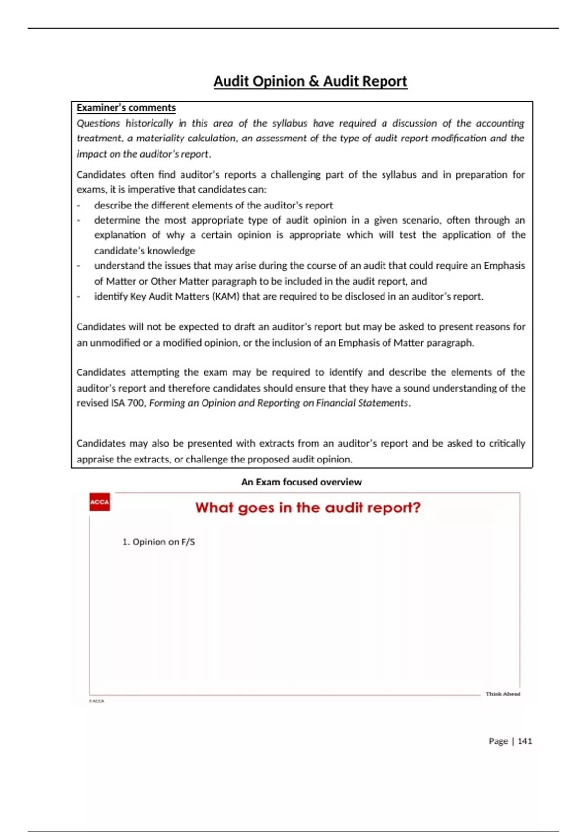 auditor’s report and therefore candidates should ensure that they have a sound understanding of the