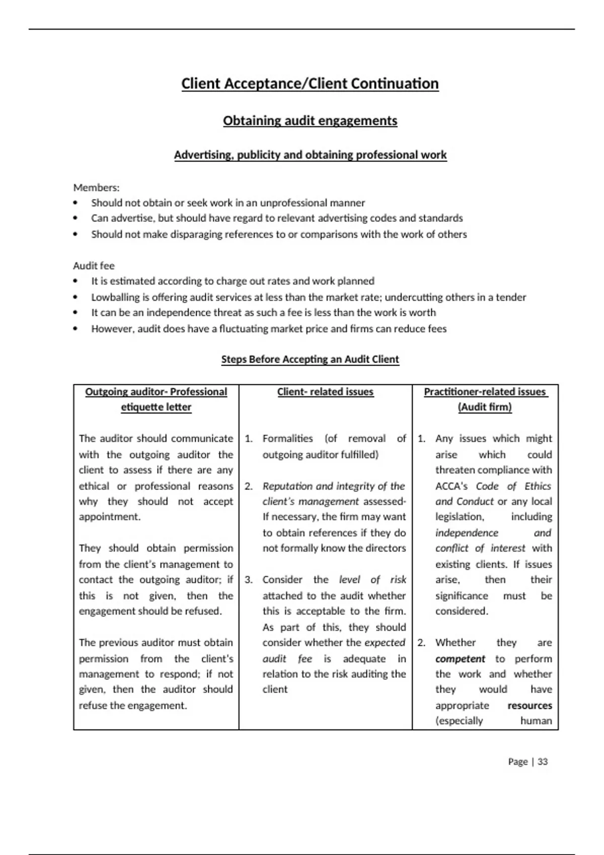 Outgoing auditor- Professional Client- related issues Practitioner-related issues