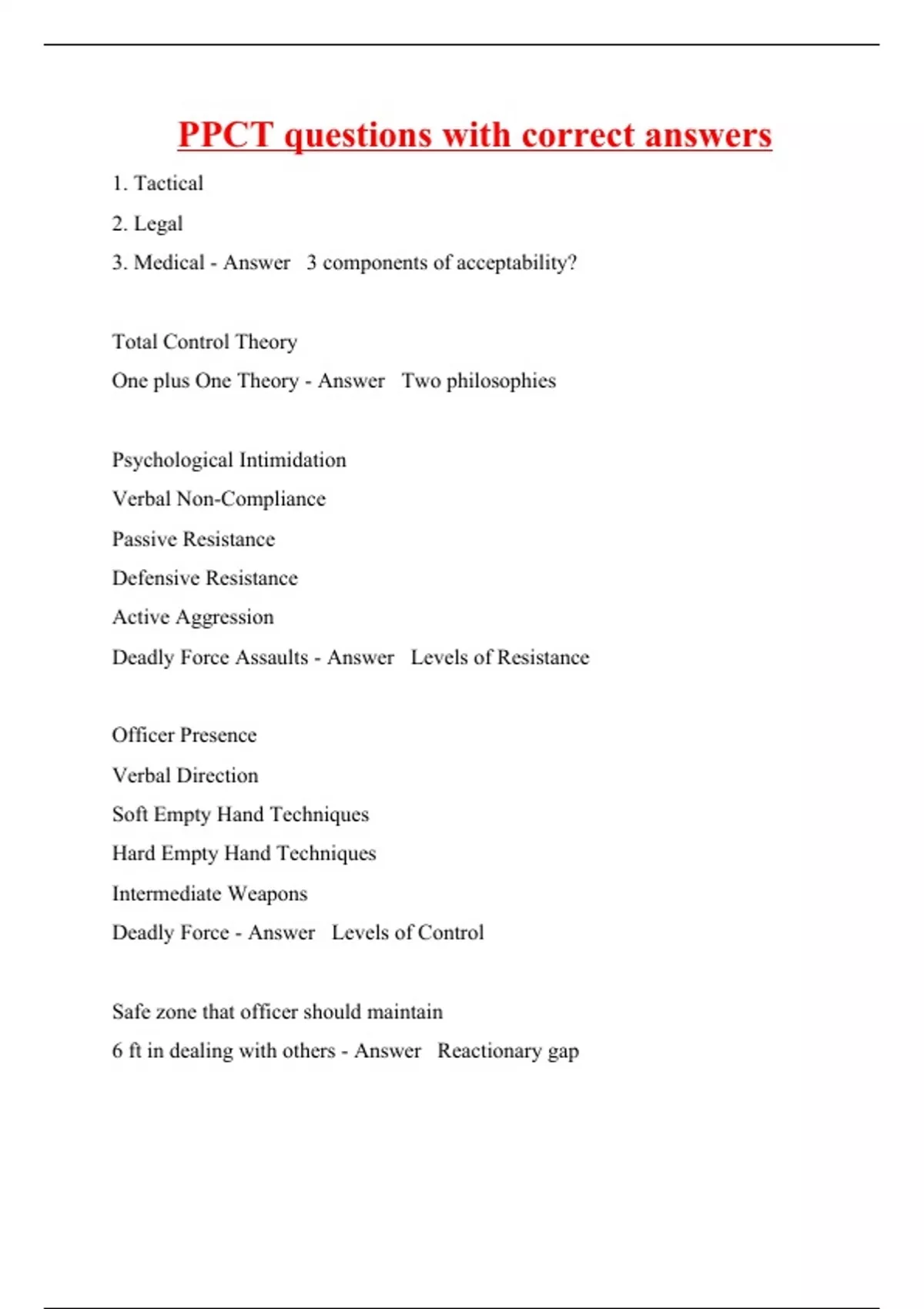 Deadly Force - Answer Levels of Control