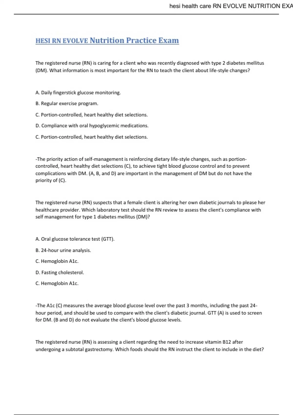 HESI RN EVOLVE Nutrition Practice Exam