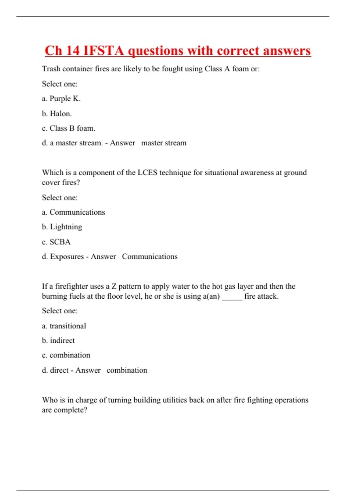 ch 14 ifsta questions with correct answers