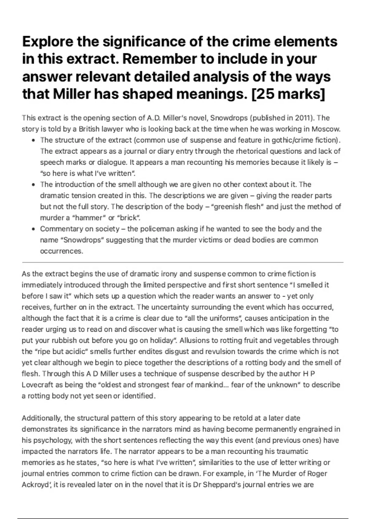 As the extract begins the use of dramatic irony and suspense common to crime fiction is