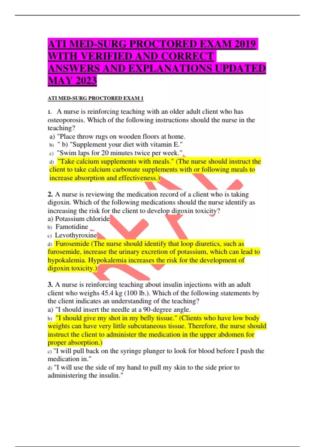 ATI MED-SURG PROCTORED EXAM 2019 WITH VERIFIED AND CORRECT ANSWERS AND EXPLANATIONS UPDATED MAY 2023