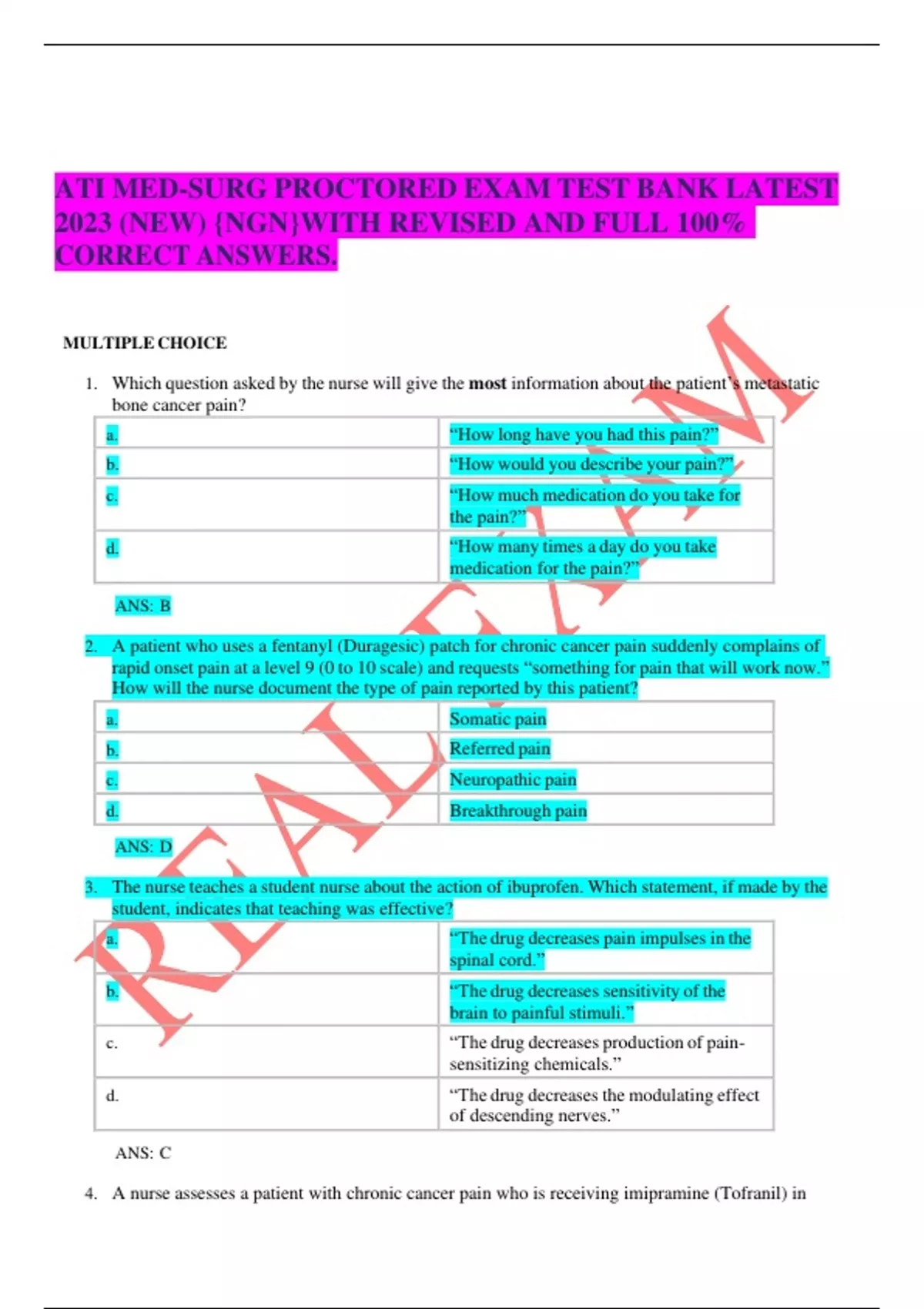 ATI MED-SURG PROCTORED EXAM TEST BANK LATEST 2023 (NEW) {NGN}WITH REVISED AND FULL 100% CORRECT ANSWERS.