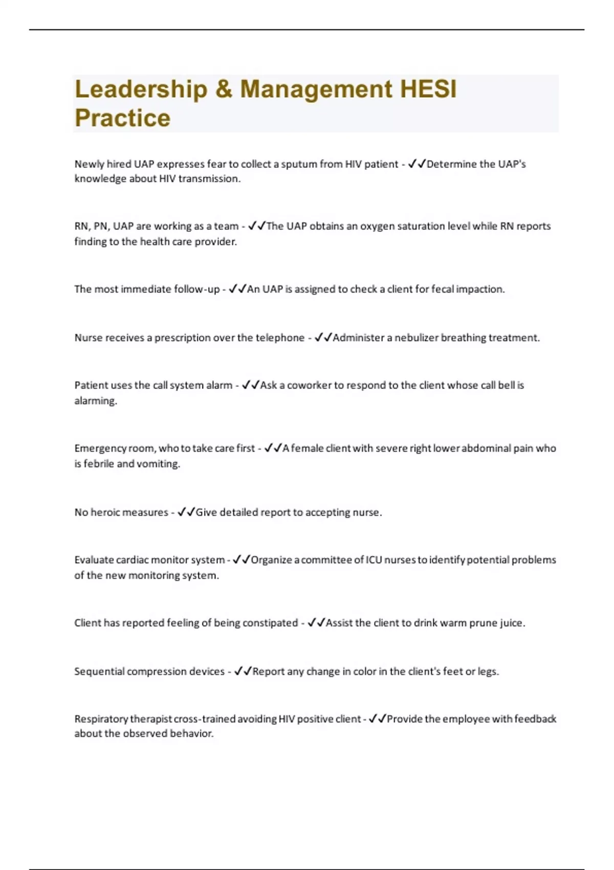 - Leadership & Management HESI Practice